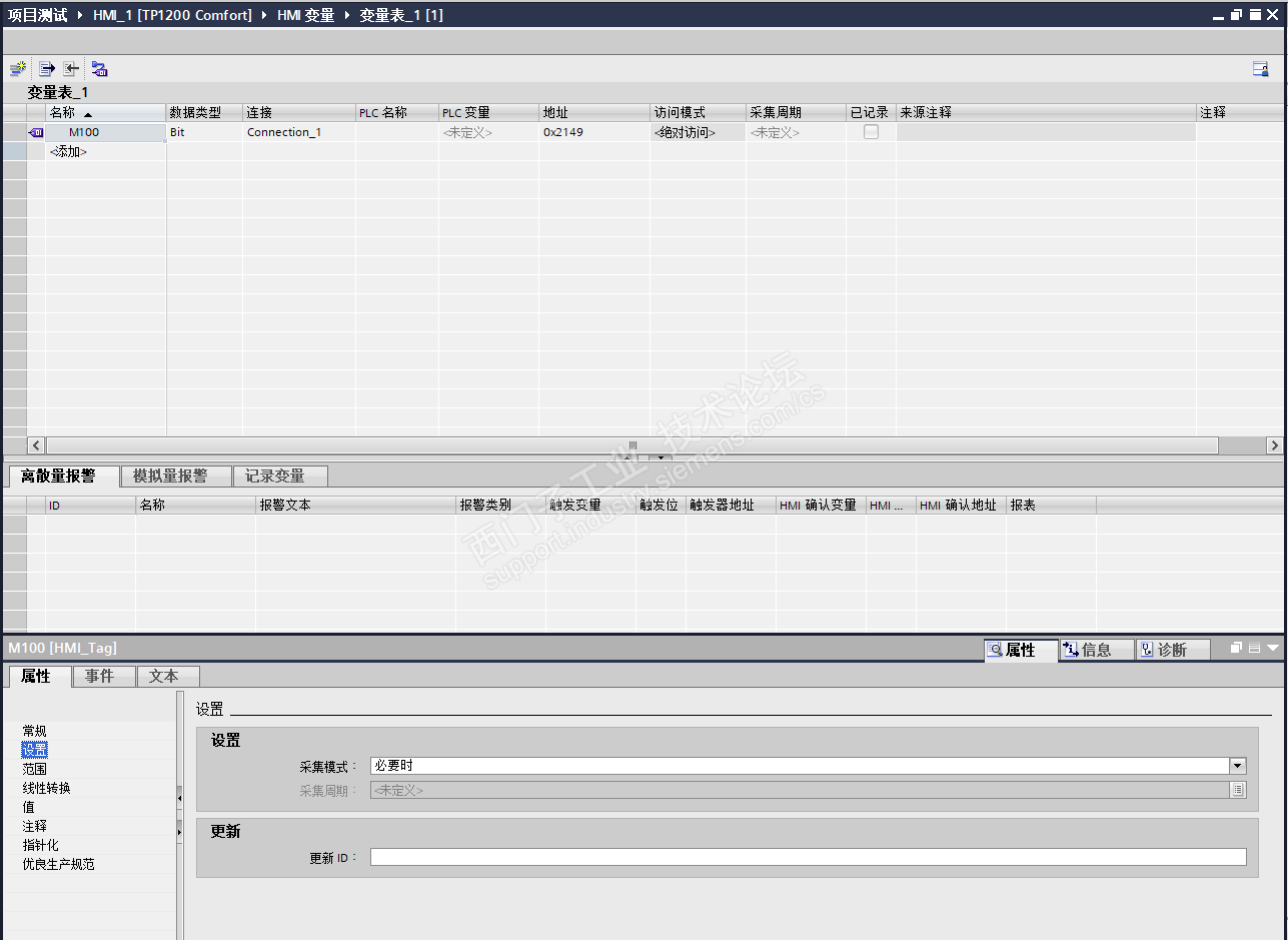 如题,使用开关连接了外部变量地址,我把变量的采集模式改成了必要时。