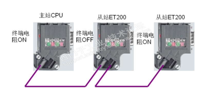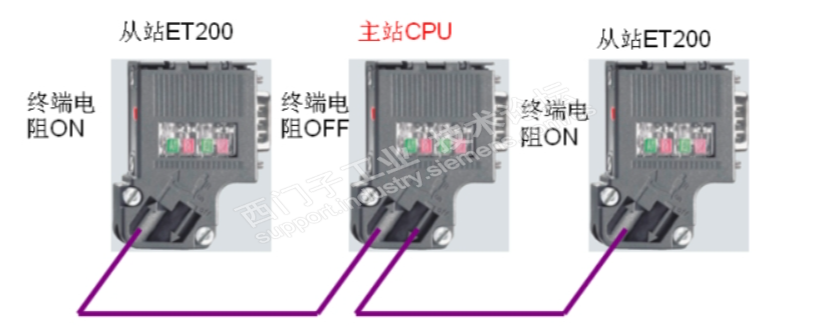 然后依次连接后面的站点,中间的站点终端电阻打OFF,最后面的站点终端电阻打ON。