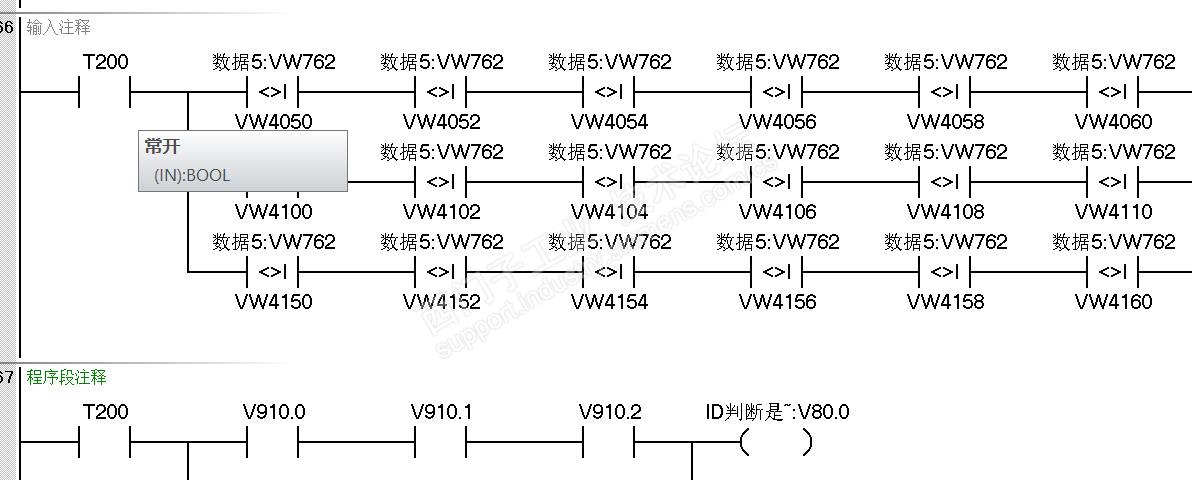 比如我现在VW100输入888,我PLC里有111,222,333,...(数据区大概有30个)要判断输入的888在我的数据区里有没有888,程序怎么写?我的PLC是Smart200