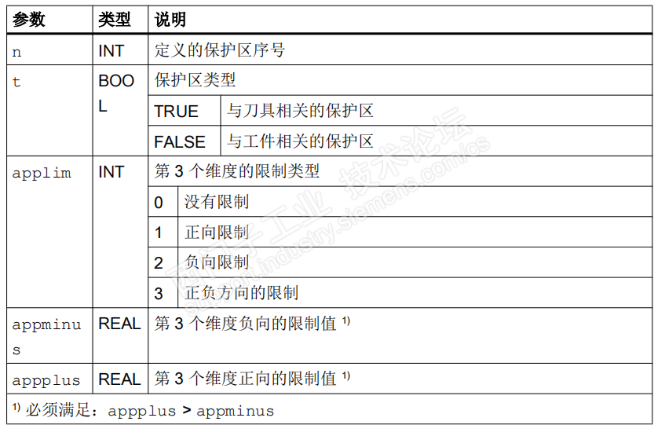 ● 定义开始指令 – 通道专用的保护区:CPROTDEF(...) – 机床或 NC 专用的保护区:NPROTDEF(...)