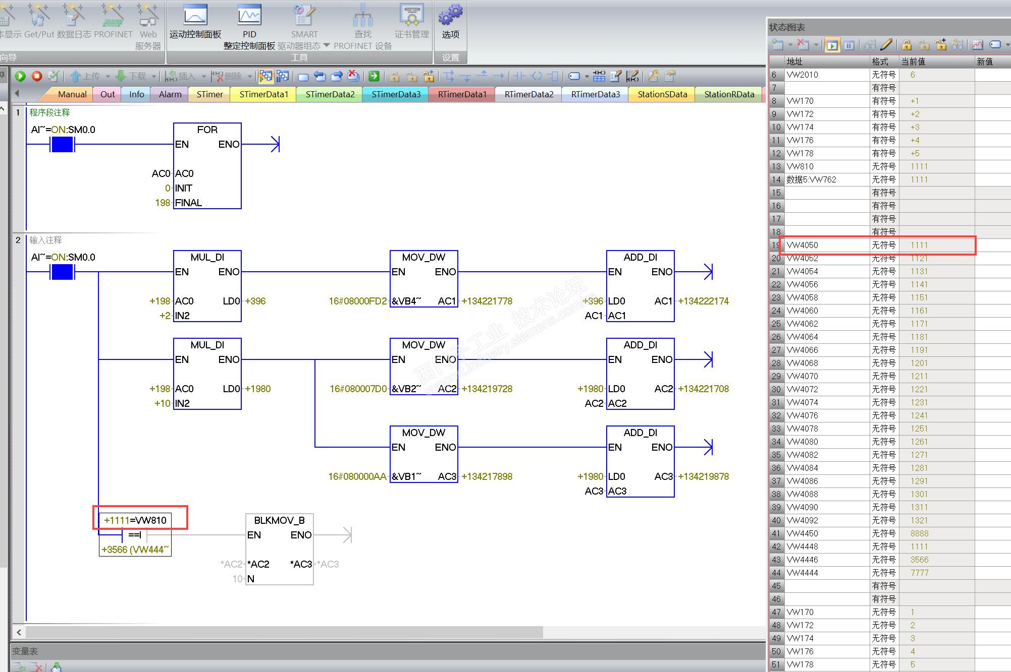 测试了这个程序,但是没有成功,我给VW4050赋值1111,但是for循环没有找到?