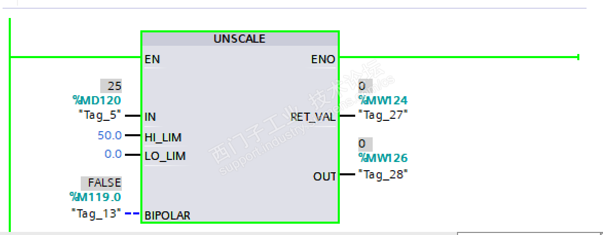 WINCC7.5 SP2,博途15.1仿真器,在WINCC的IO域变量指向PLC库指令, FC106模拟量输出,在线模拟程序段可以看到输入有值,但是FC106输出却是0.再调用FC105 和PID模块,在仿真器设置IW输入值,明明输入的是13824,但在WINCC条形图却显示100%,再试其它值,只要有数值,WINCC条形图都是100%,不知有没有哪个朋友遇到类似问题,这究竟是WINCC的问题,还是PLC仿真器的问题。
