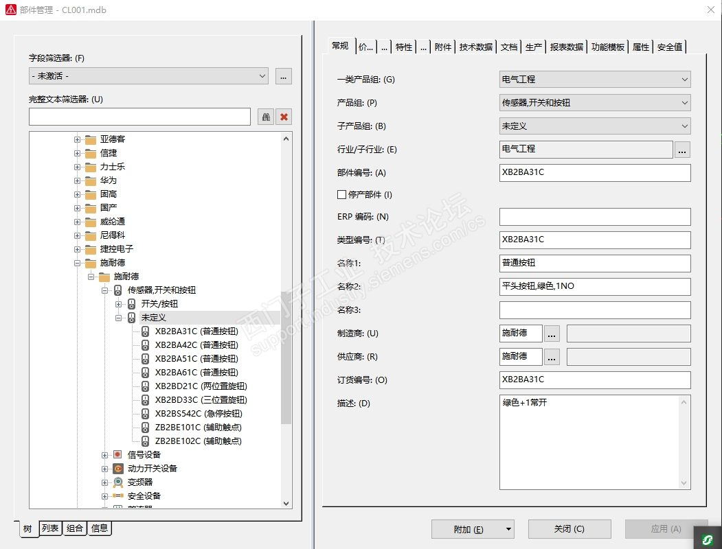 添加部件 我子产品组 图1 未定义 选择成图2 开关和按钮 然后点击应用 为什么不能更新到 图中左侧 未定义上面的开关和按钮合并。