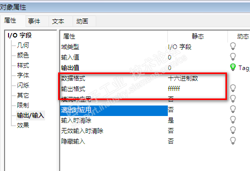 如果需要在画面中显示16进制,建议调整IO域的格式样式