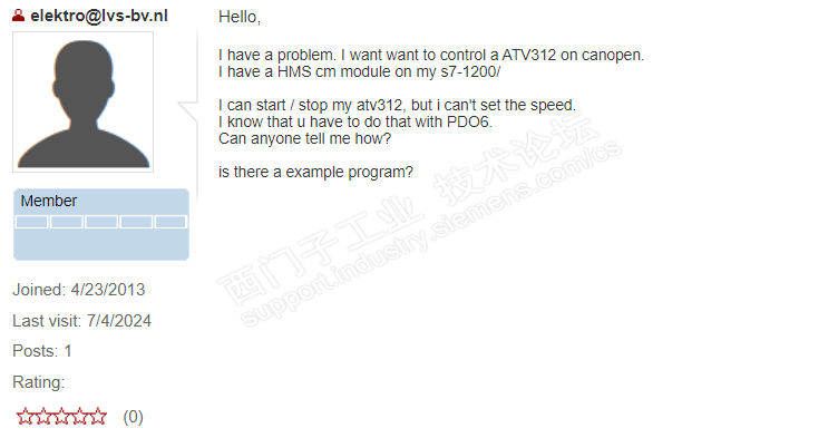 目前我和这个人有一样的疑问,CM CANopen可以组态,canopen configuration studio也下载并且按流程使用了,导入ATV312 eds 文件后会发现RPDO1和TPDO1前面有个小手,被强制了,看ATV312 canopen说明书PDO1和PDO6可以一起使用,那也就是说RPDO6在参数里选2个选项(比如一个加速度,2字节,一个目标速度,2字节),CAN-ID写686(假如canopen address是6)这样凑一个RPDO6,然后和RPDO1一起组合使用吗?