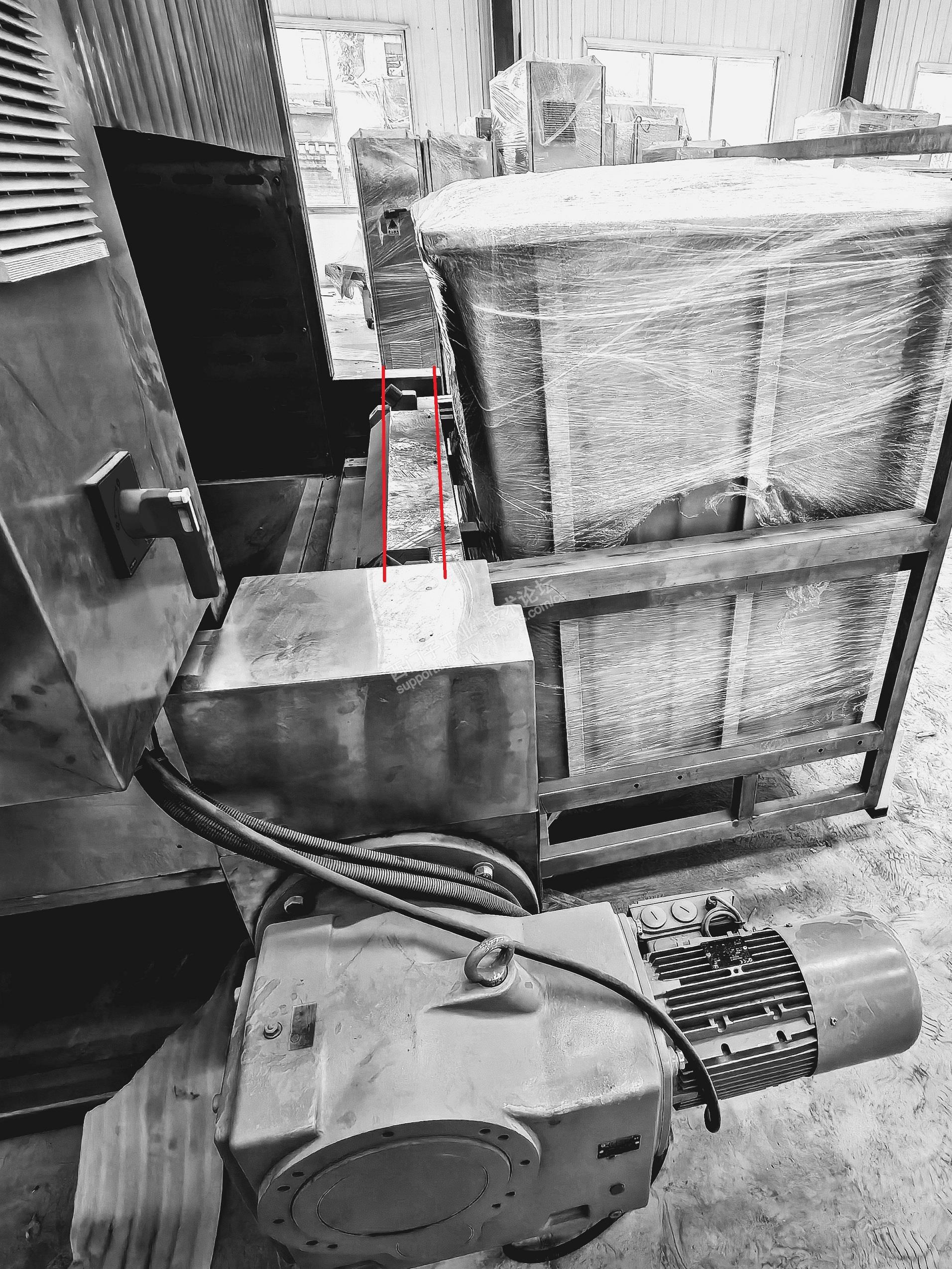 零食包装袋灭菌后的清洗,原来是靠人工翻转倾倒,现在做自动化改造,看到平衡配重块了吗?
