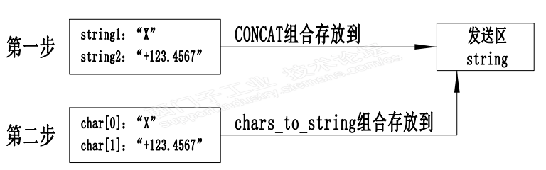 过程:逻辑上是先执行第一步,将坐标位置"X+123.4567"放到发送区,再执行第二步,发送到位信号“OK”到发送区;