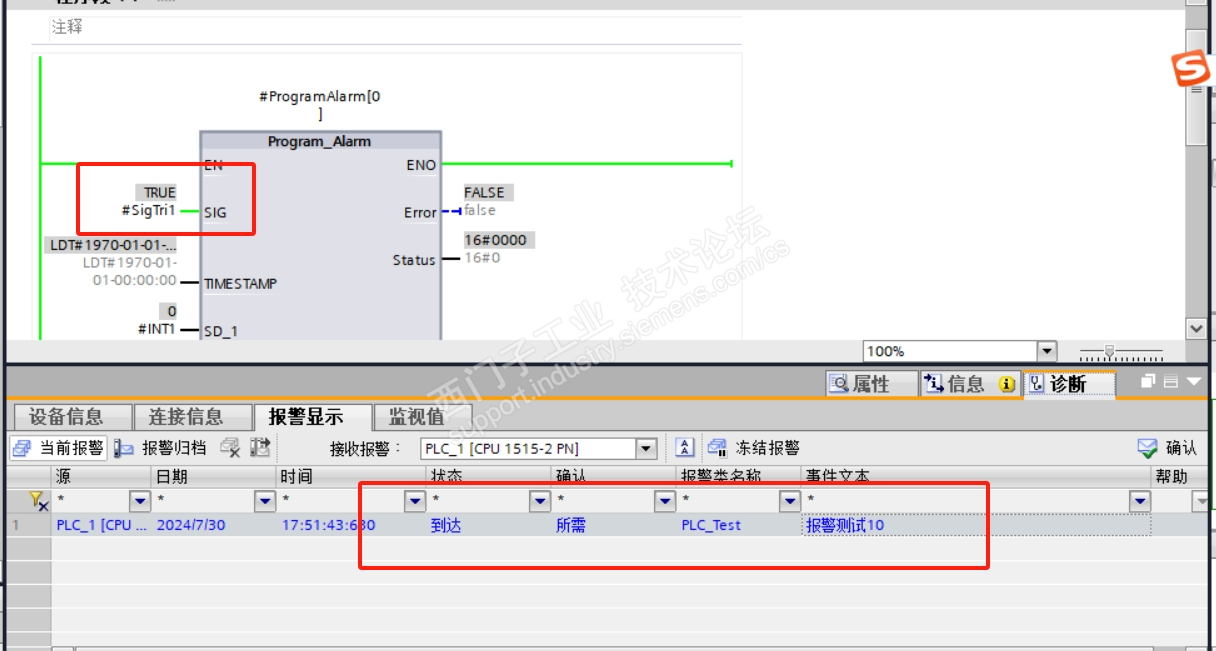 1500 PLC 使用Program-Alarm报警触发了触摸屏不显示? TP的触摸屏 哪里的原因
