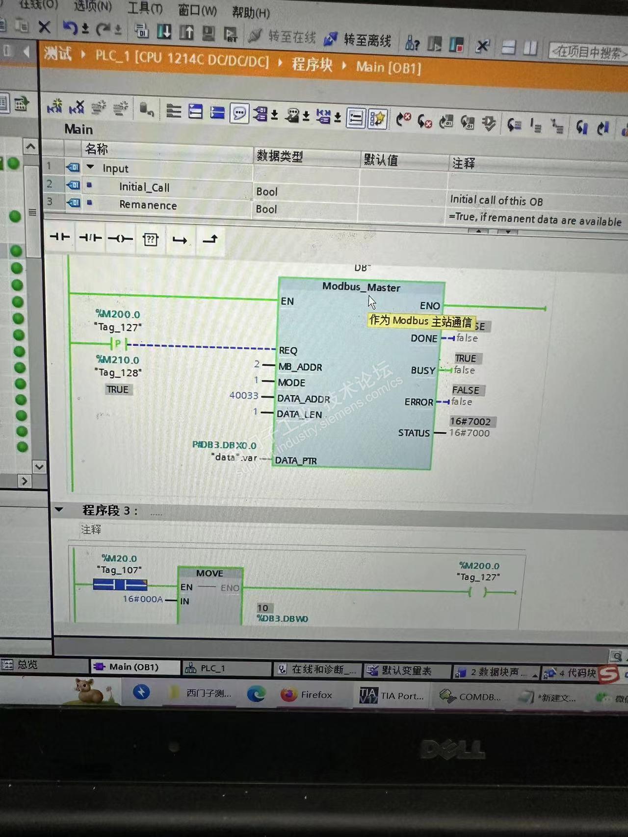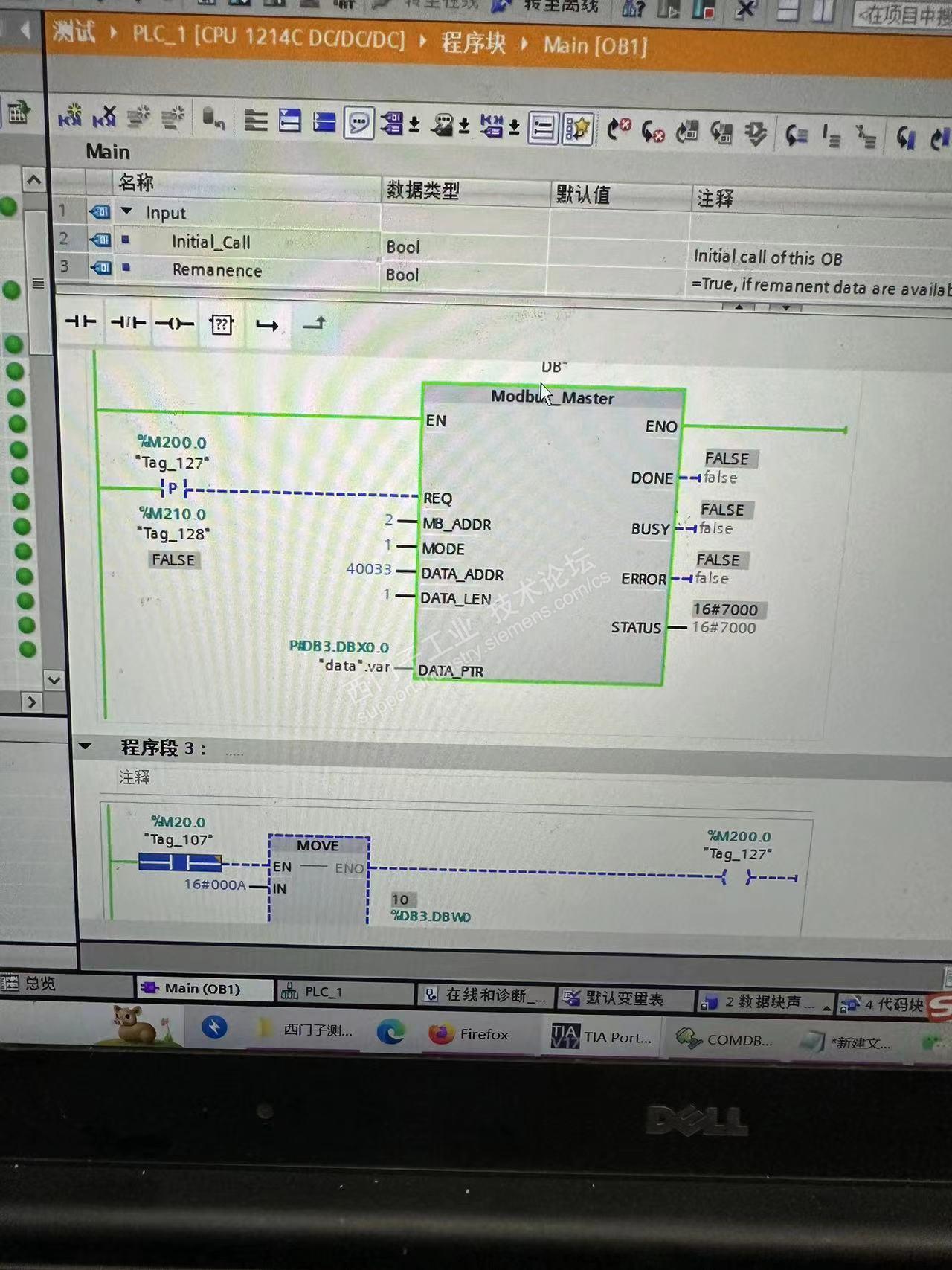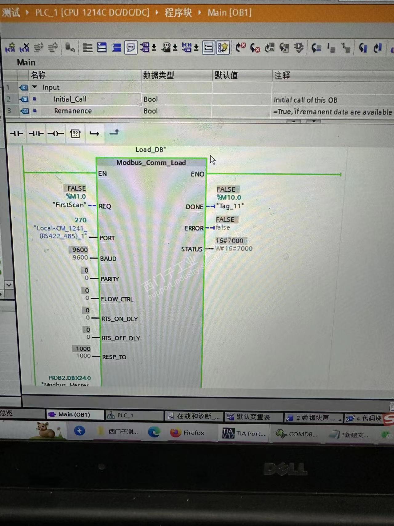 我用CM1241与一个驱动器通讯(型号:SSD2505PR),我创建简单的通讯程序后,发现写入指令发送不下去,一发送busy就变为true,status变为16#7002,这是什么问题啊,求各位大佬指教