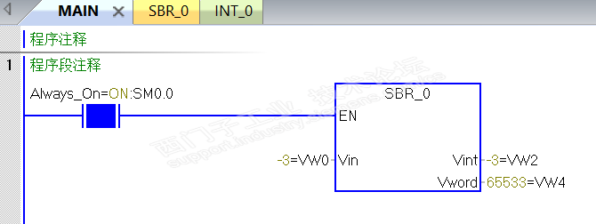 子程序块里把变量的类型的数据类型从WORD改成INT