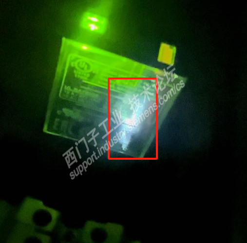 2、利用PLC模块自编程序搭建试验平台,模拟高炉液压阀门运行工况,电磁阀每次动作5秒,每隔10秒动作一次;分两组进行测试,一组电磁阀线圈没有反向并联二极管,另一组在电磁阀线圈两端反向并联二极管,通过测试15天(约动作8万次),对比两个中间继电器触点,没有反向并联二极管的继电器壳体内部“发黑”严重很多,且触头明显有烧蚀的现象;而有反向并联二极管的继电器壳体内部只有少量的“发黑”,触头接触面良好。通过试验证明在直流感性负载的电磁阀线圈两端反向并联续流二极管,对延长中间继电器寿命、降低设备故障率有很大的作用。