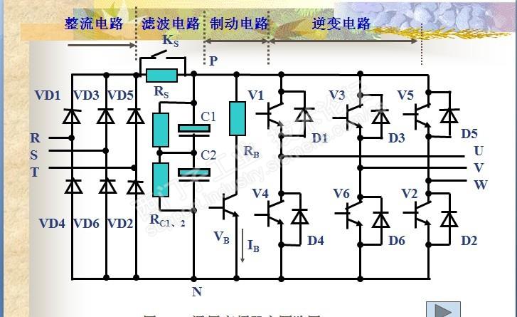 四大环节:整流、滤波、再生制动(斩波)、逆变。
