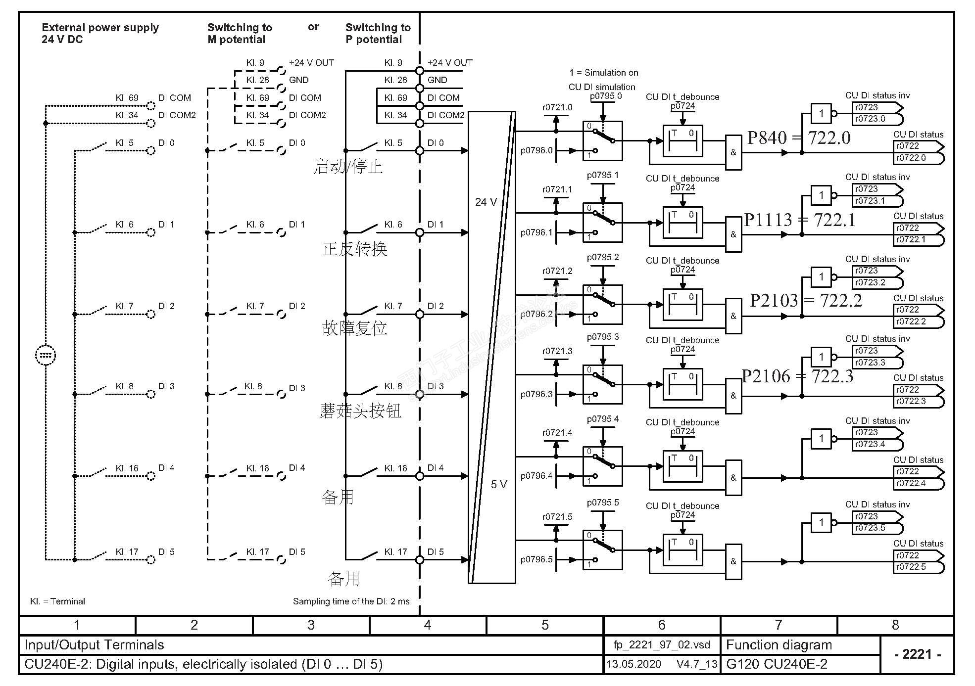 最后,就是端子的连接和内部参数的BiCo了。端子连接特别有意思。无需做任何工作,就是把MM440过去的连接端子,接到G120对应的端子上。连端子接线号都是一模一样的哟。