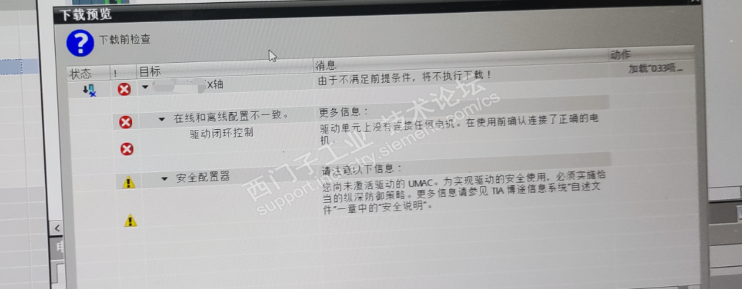3 就是给 S200下载软件时,提示【在线和离线配置不一致】【驱动闭环控制】【驱动单元上没有连接任何电机。。。】