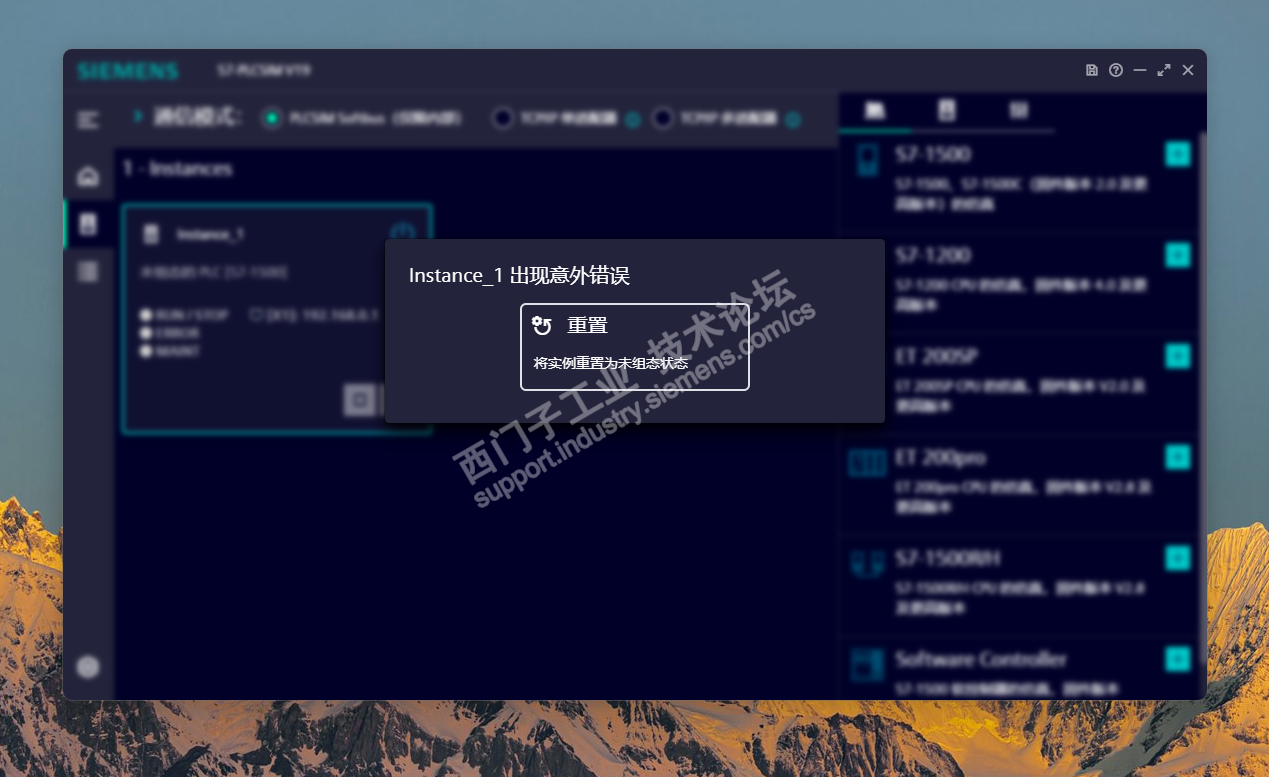从博途里面直接启动仿真之后 再添加1500cpu点击启动cpu就出现这种情况