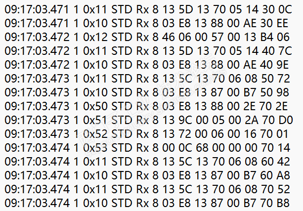 上图为CAN第三方设备读取到的信息,打算取ID为0x10的做实验,STD应该为11位的CAN2.0B