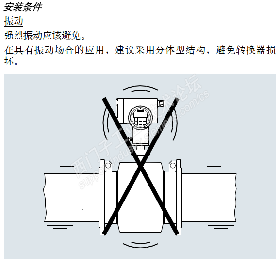 在电磁流量计产品样本和使用手册中都有安装条件要求,应该避免安装在强烈振动的产品。并且MAG5000/6000变送器都经过IEC相关标准的振动测试,在样本中也给出了耐振动指标数值。