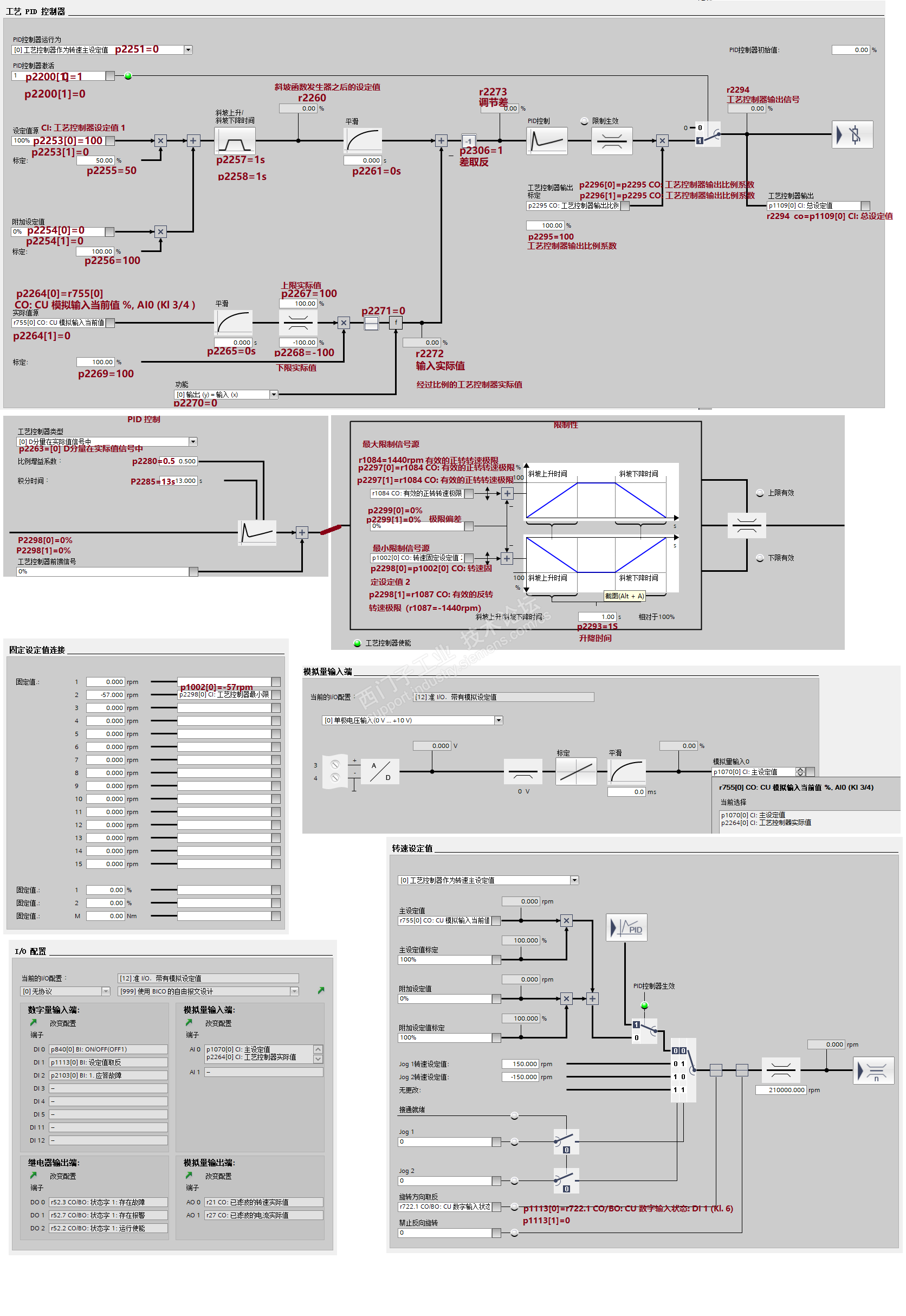 要看工艺调节器PID的两个输入端是怎么设置的。不能只看正负限幅设置。