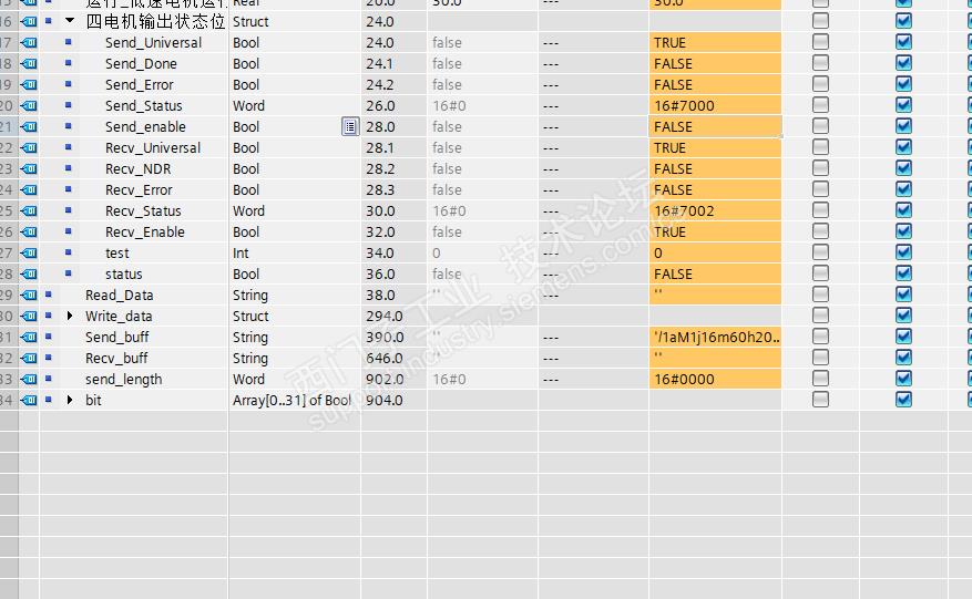 各位大佬,我最近在用西门子的自由口通信一台四电机的驱动板,我用串口通讯调试了,可以把数据发给通信软件,但是通信软件发数据,PLC却无法接受,大家能帮我看看这是什么情况吗?
