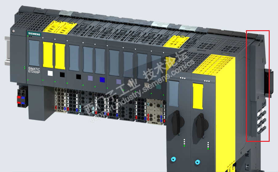 服务器模块是ET200SP的必要组成部分,安装在最后一个模块的右侧,与背板总线连接,用于完成ET200SP的组态,并且断开ET200SP的背板总线,保护模块电路的功能,包含支撑三个备用熔断器的支架(5 × 20 mm),服务模块随 CPU/接口模块一同提供。