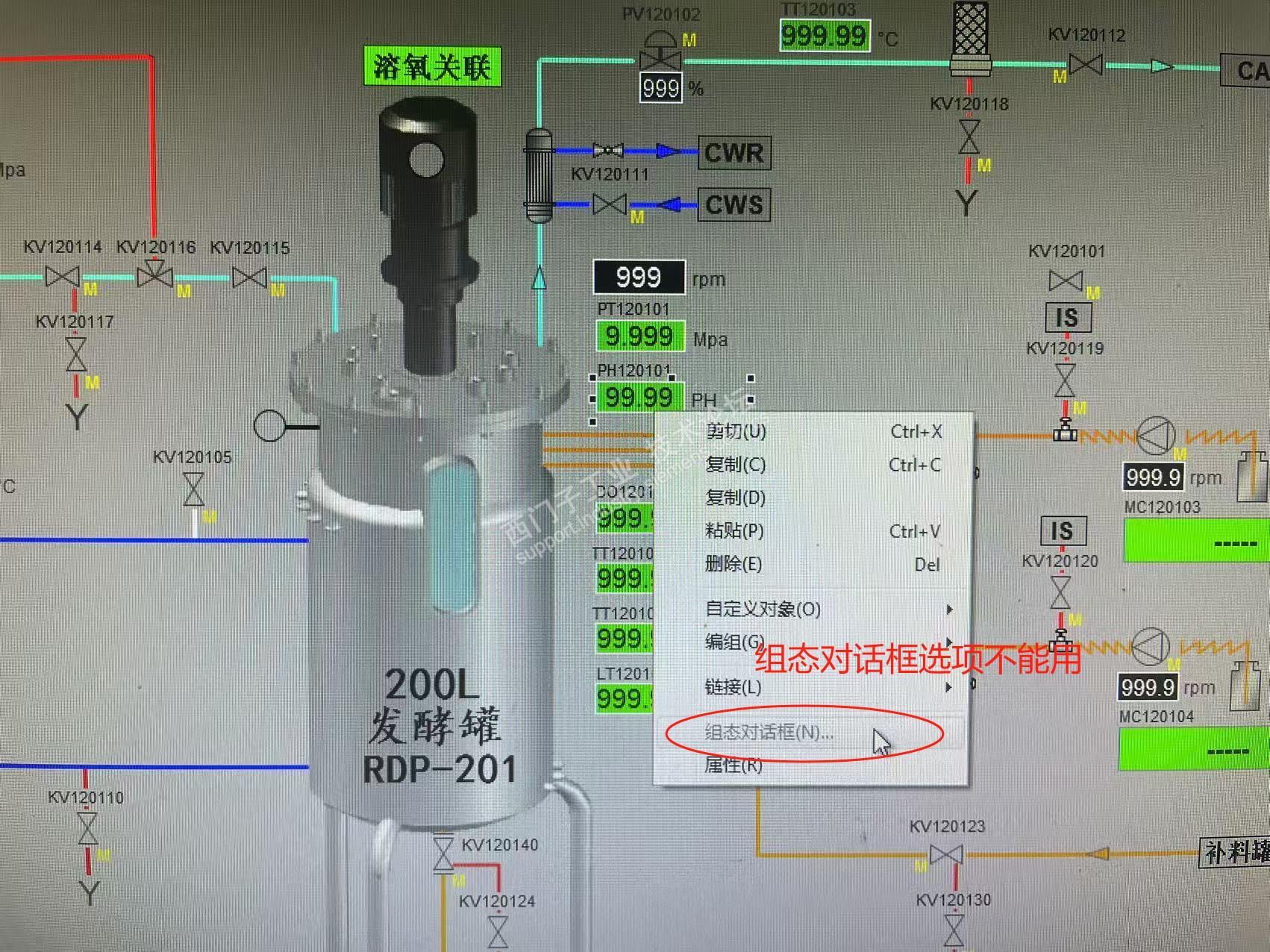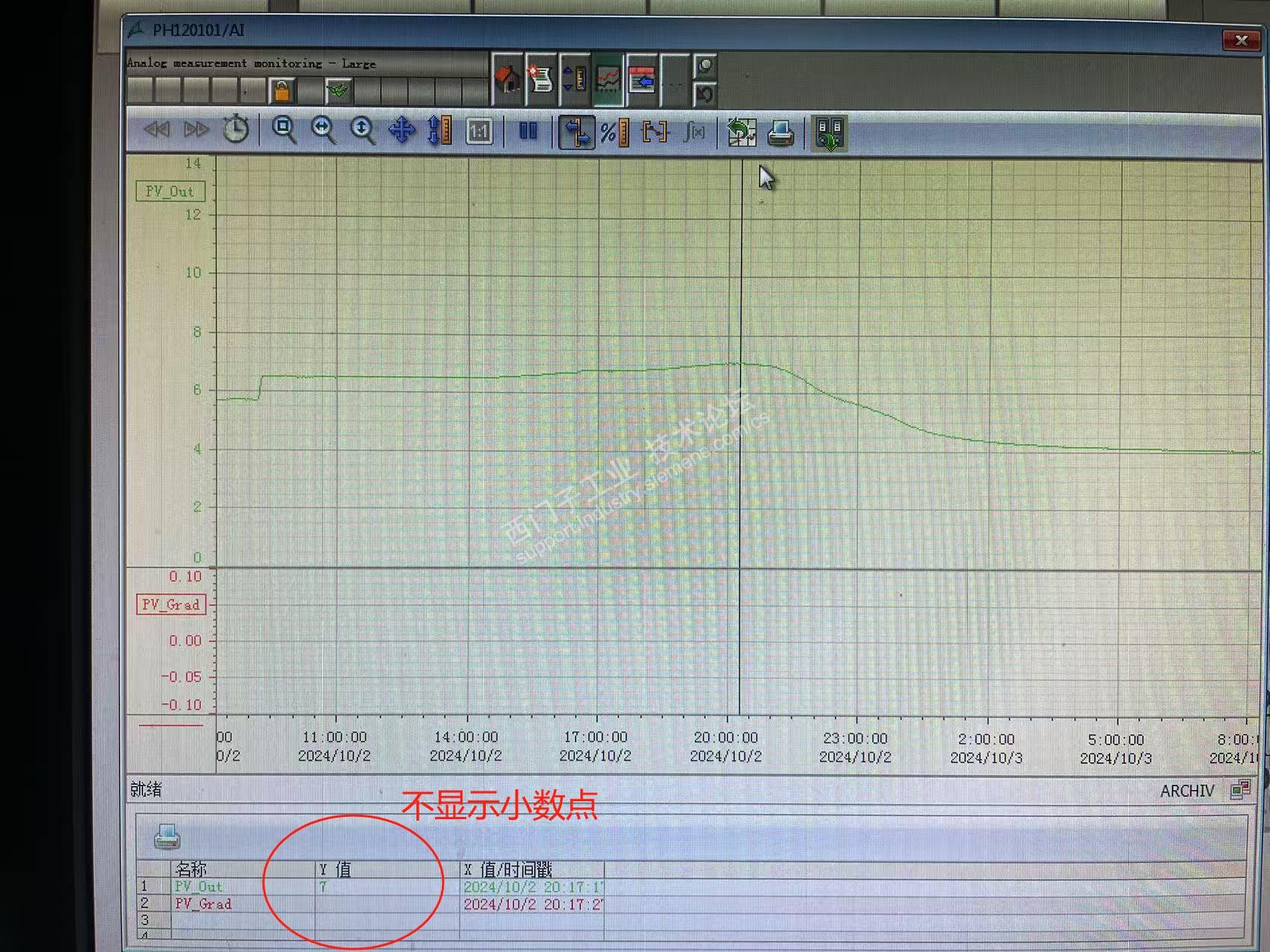 各位大神好,我的pcs7系统,现在所有参数(包括压力、温度、pH)的趋势图都不能显示小数点了,请问怎么处理。有论坛说找到相应的pdl图片设置,但是我的wincc组态图片上没有这个趋势图片。也有说右键组态对话框进行设置,但是我的这个选项不能用。