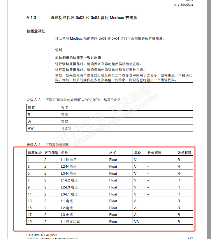 问题:PAC3220电能表的MODBUS地址是多少?手册里只有偏移地址如图: