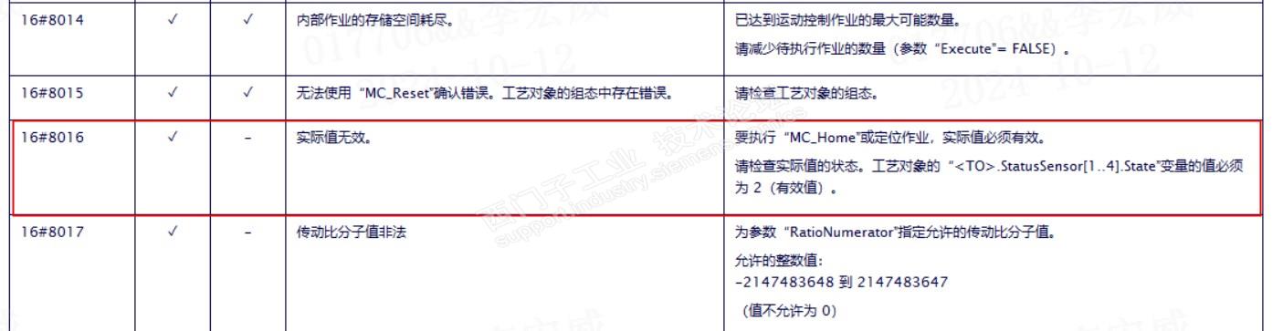 16#8016:实际值无效。(1500PLC才有这个报警,1200回原点没有这个报警)