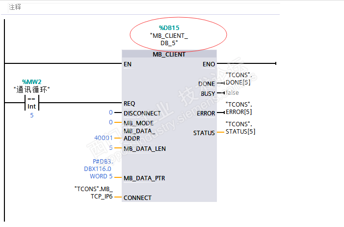 你打开MODBUS TCP的背景数据块,里面必须手动指定MB_UNIT ID