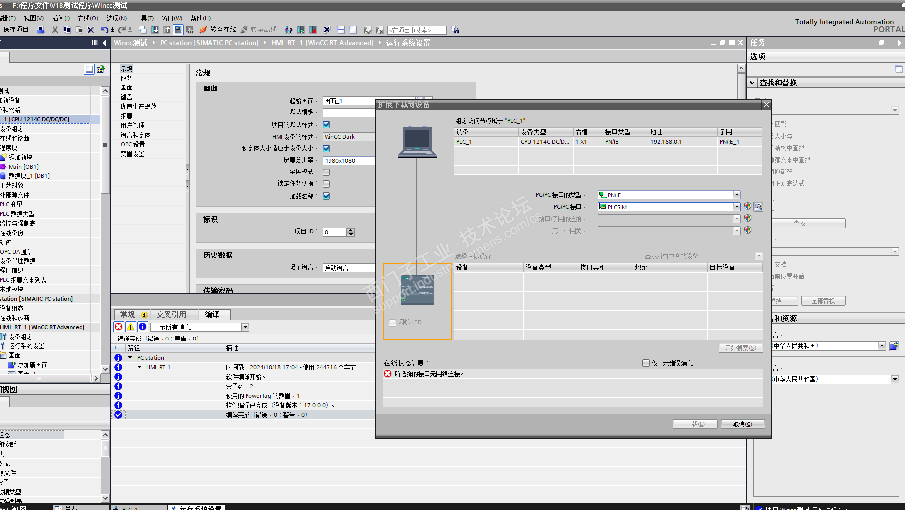 V18仿真,显示无网络接口,啥原因?