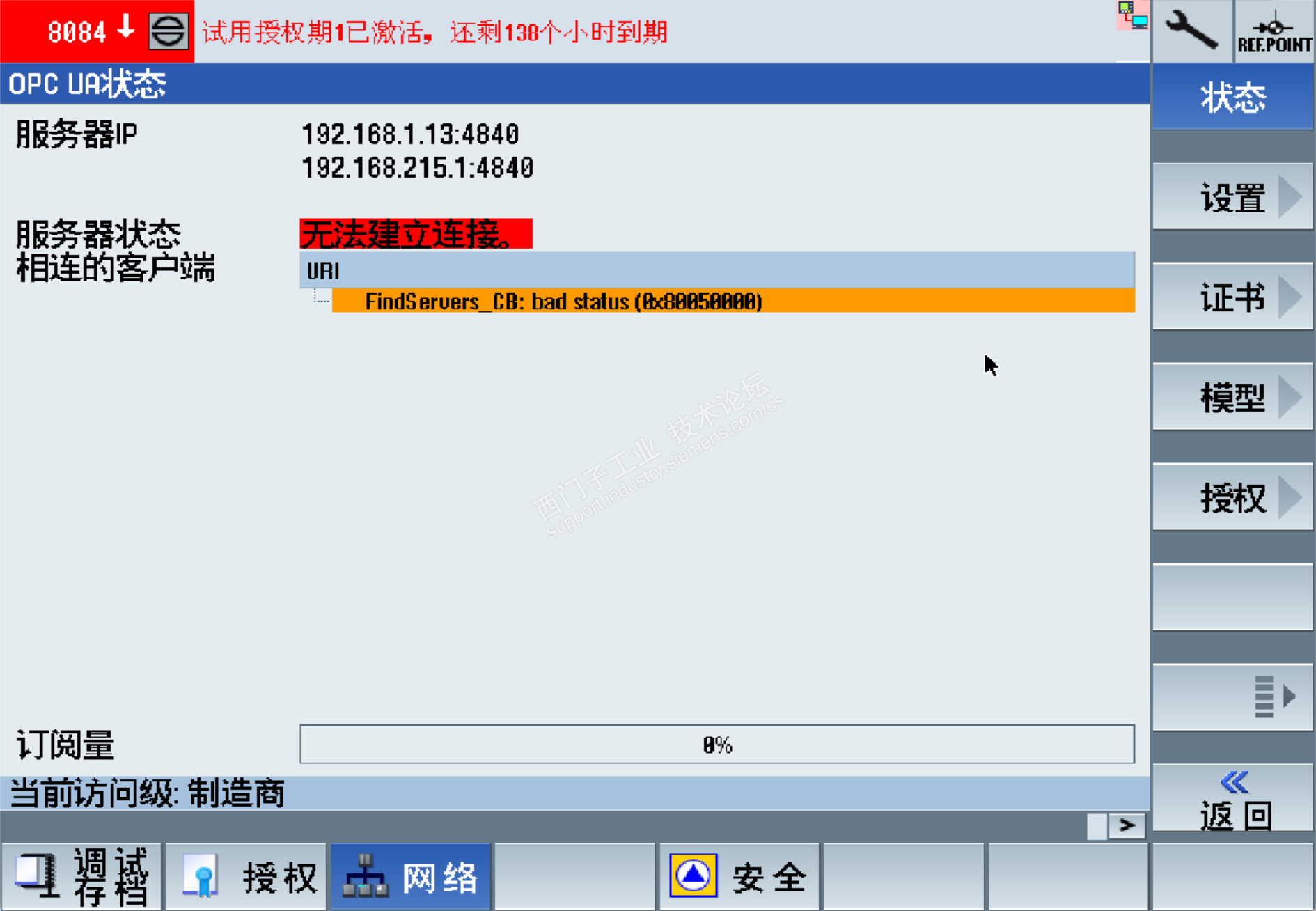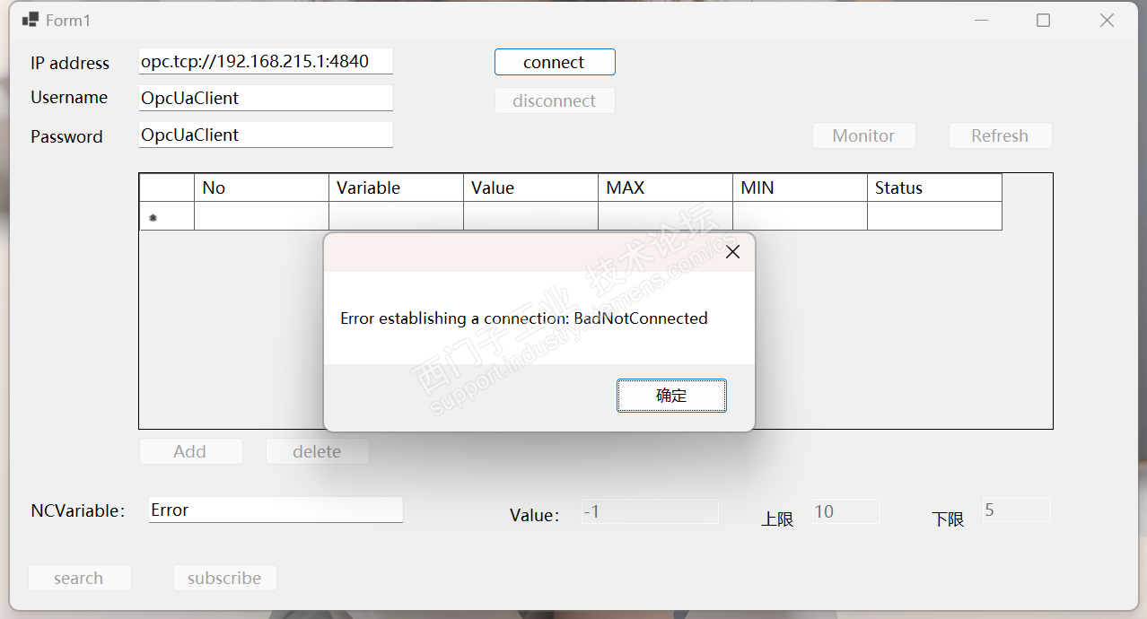 我在用电脑跟机床使用OPC链接的时候,总是报通信错误。是我哪里设置的不对呢?