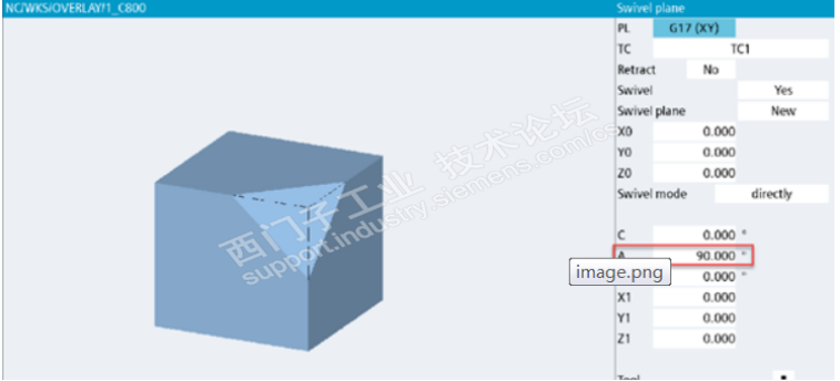 1. 执行N60,刀具绕X轴旋转90度