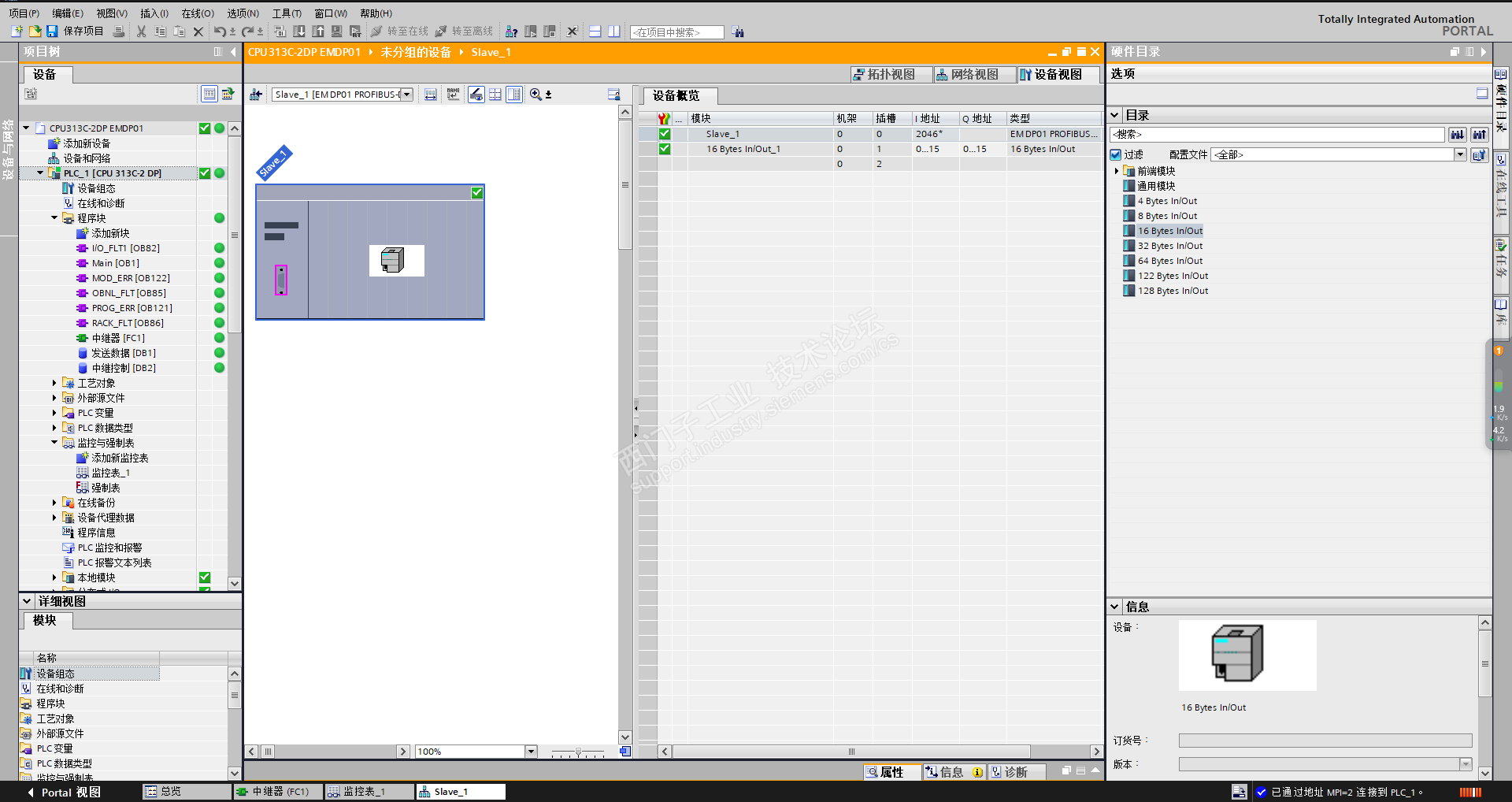 总结:因为网上的教程关于S7-300 plc与EMDP01通讯都是采用S7-317CPU所有一直按照教程测试一直没有成功。今天所以降低通讯字节地址,没想到原因给暴露出来了。总算弄明白了!