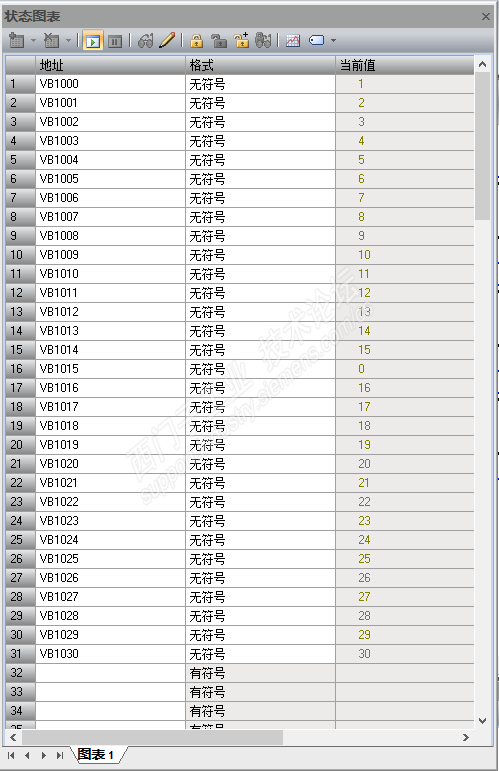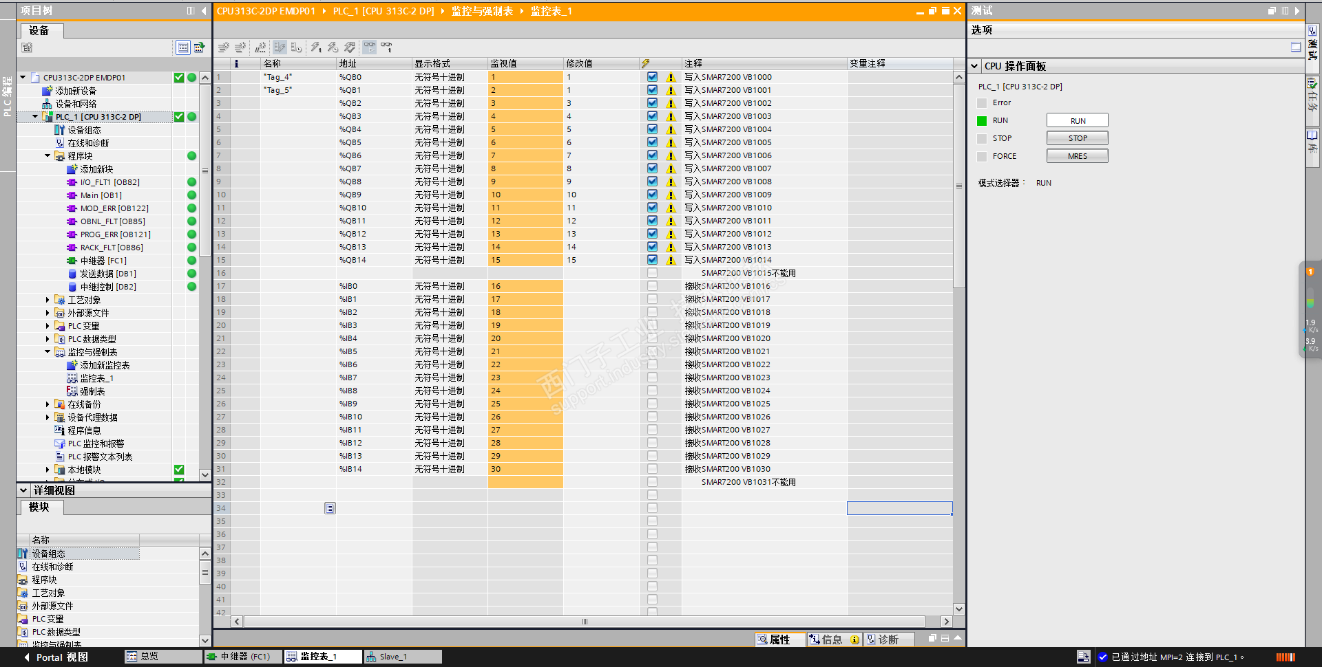 实际应用中300plc发送给SMART200的地址是QB0~QB14(QB15最高位不能用)监控如下图: