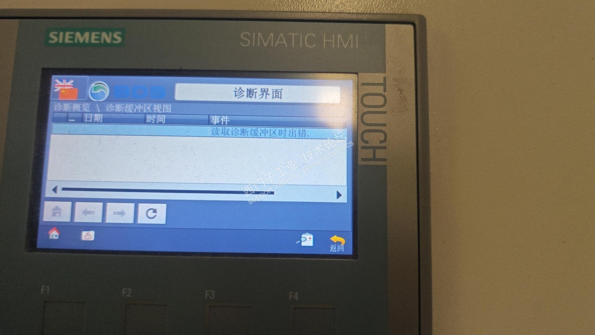一个小触摸屏 用来做信号显示,触摸屏变量已几经关联了PLC变量,PLC信号有变化,但是触摸屏上面的相应的IO信号没有改变颜色,同时触摸屏上面有报警 读取诊断缓冲区时出错,查了半天 也没有查出问题所在