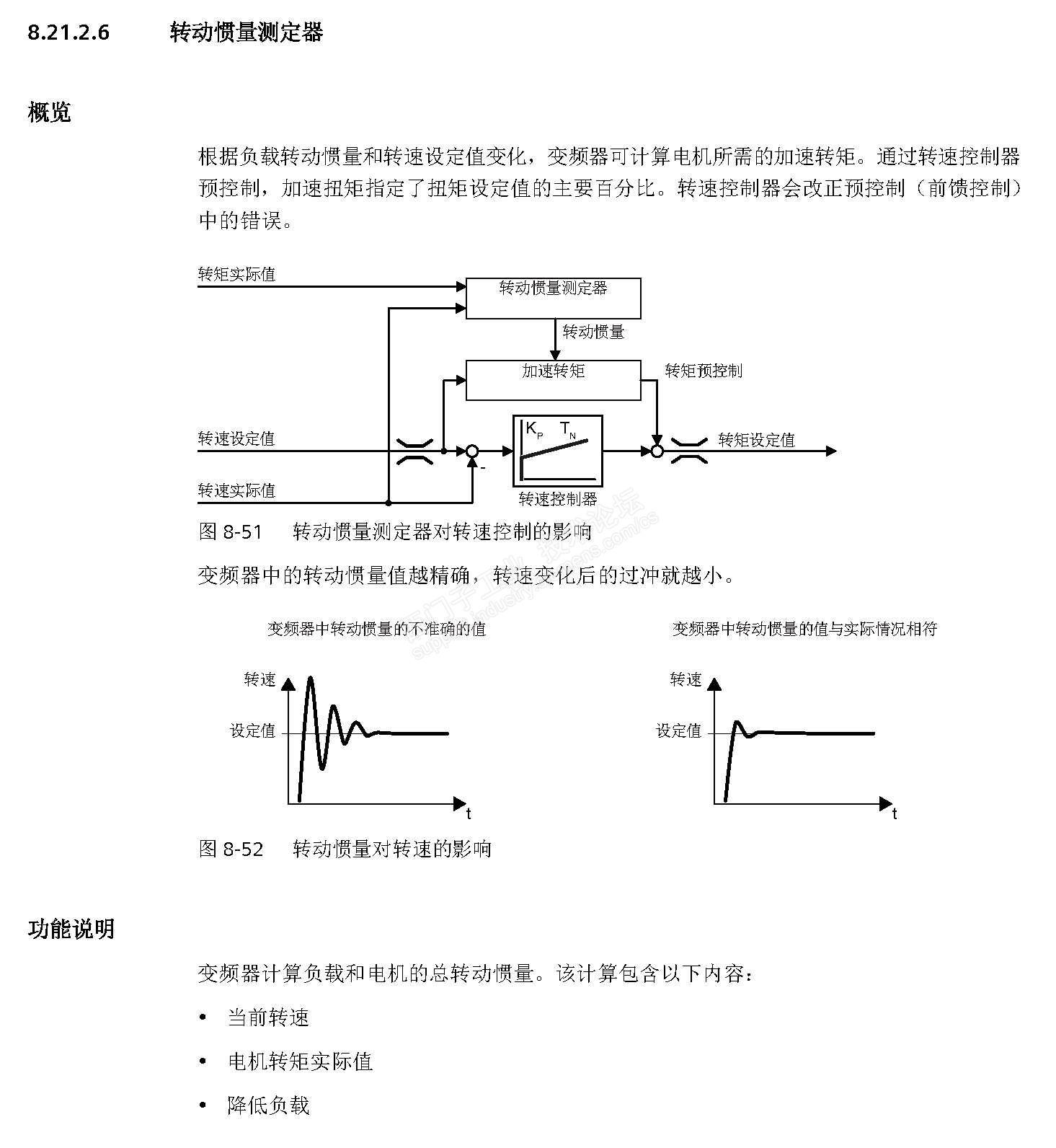 由概览的原理框图所示。不管是转速的设定值变化,还是转速的实际值变化,观测器都会做出反应。实时根据测试的惯性大小对其进行前馈补偿。正是因为这个前馈补偿的存在,才能保证转速实际值始终能从设定值的变化起步开始,就跟随设定的变化而变化了。