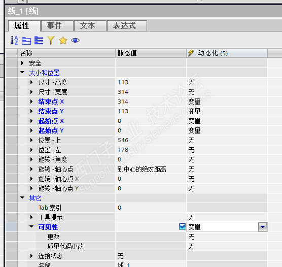 直线的起始点用变量实现动态化,可见性用变量动态化实现删除,也可以把四个点的值都设为0