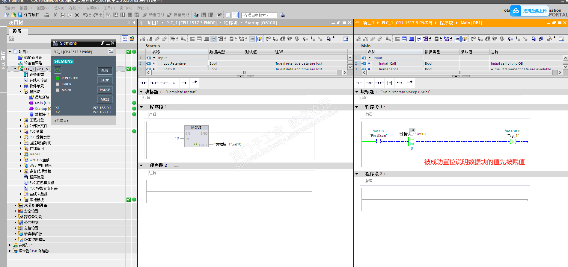 是OB100与OB1的关系?还是OB100与FIRST_SCAN的关系?
