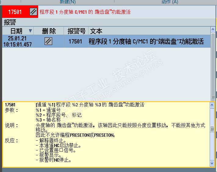 我把分度旋转轴设置成18度1齿的端面轴,设置完成以后,无论是手动还是命令移动轴都出现17501报警,请问这是编程问题还是哪里参数没设好?