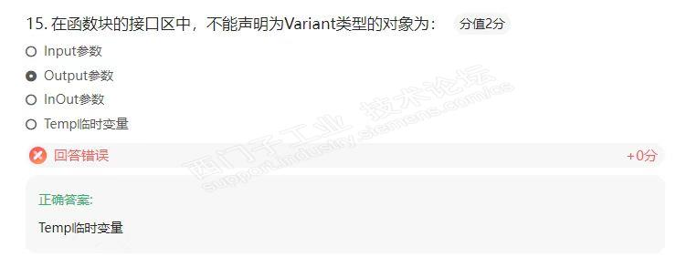 在函数块的接口区中,不能声明为Variant类型的对象为:(Temp临时变量)