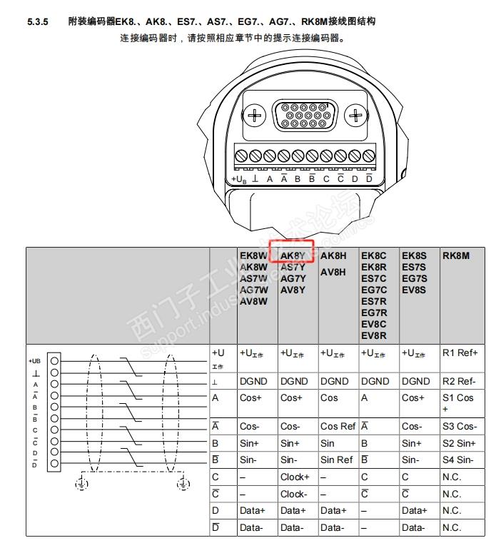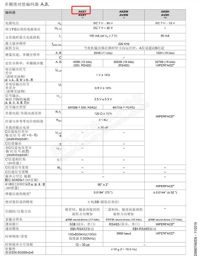 SEW电机上配的绝对值编码器AK8Y,信号类型是SIN/COS+SSI,有几个问题需要请教一下,谢谢!
