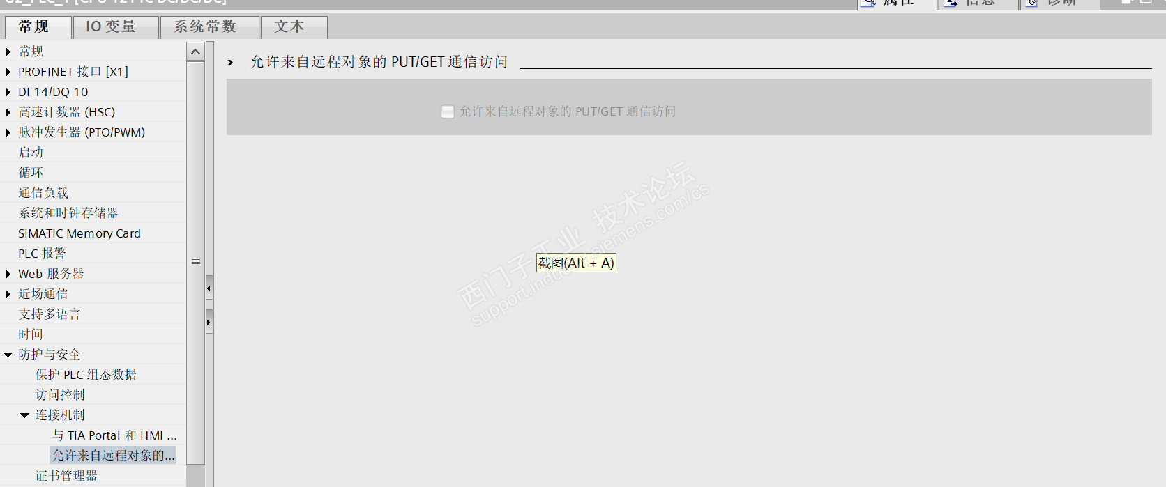 刚装上了博途V20,添加了一个1200-G2的PLC,防护与安全里,发现怎么通信设置那块,感觉不对,1 不能取消 仅支持 PG/PC与HMI通信 2,不能设置允许来自远程对象的 PUT/GET的通信,这个是怎么会回?是我软件没装好?