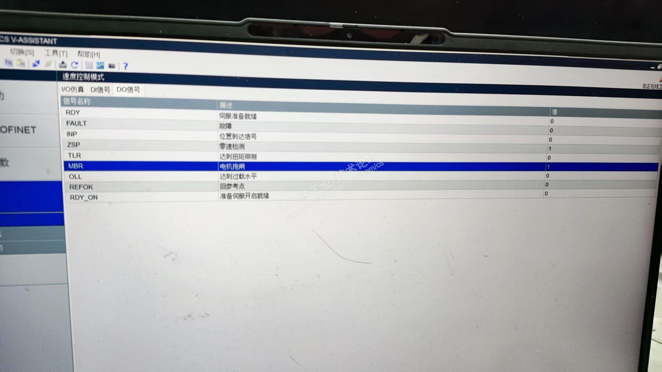 我第1次使用V90PN,先用速度模式调试,在“调试”-“监控状态”-“DO信号”,可以看到MBR电机抱闸是1,但我的中继没亮,刹车还是纱住的,我选择点动,或一键优化,看刹车都没松开;