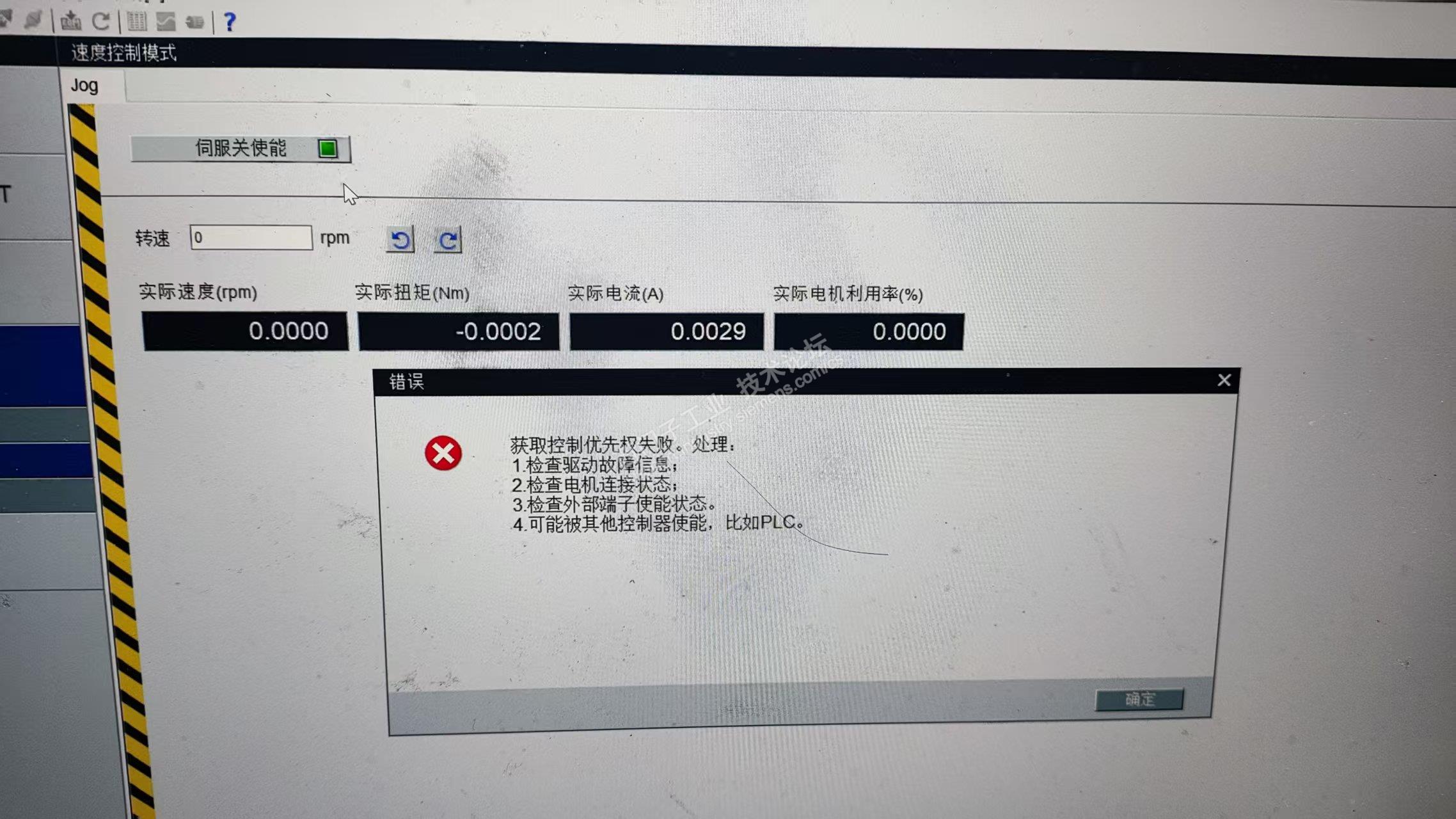 没办法,我直接将刹车送电,强制打开,伺服马达选择1F6042-2AF2X-XAA\GX,无刹车的,下载;用网线连接会出现,一使能,出现获取控制权失败,做之前,我通过“工具”-“出厂值”,那和外部PLC都没关系;