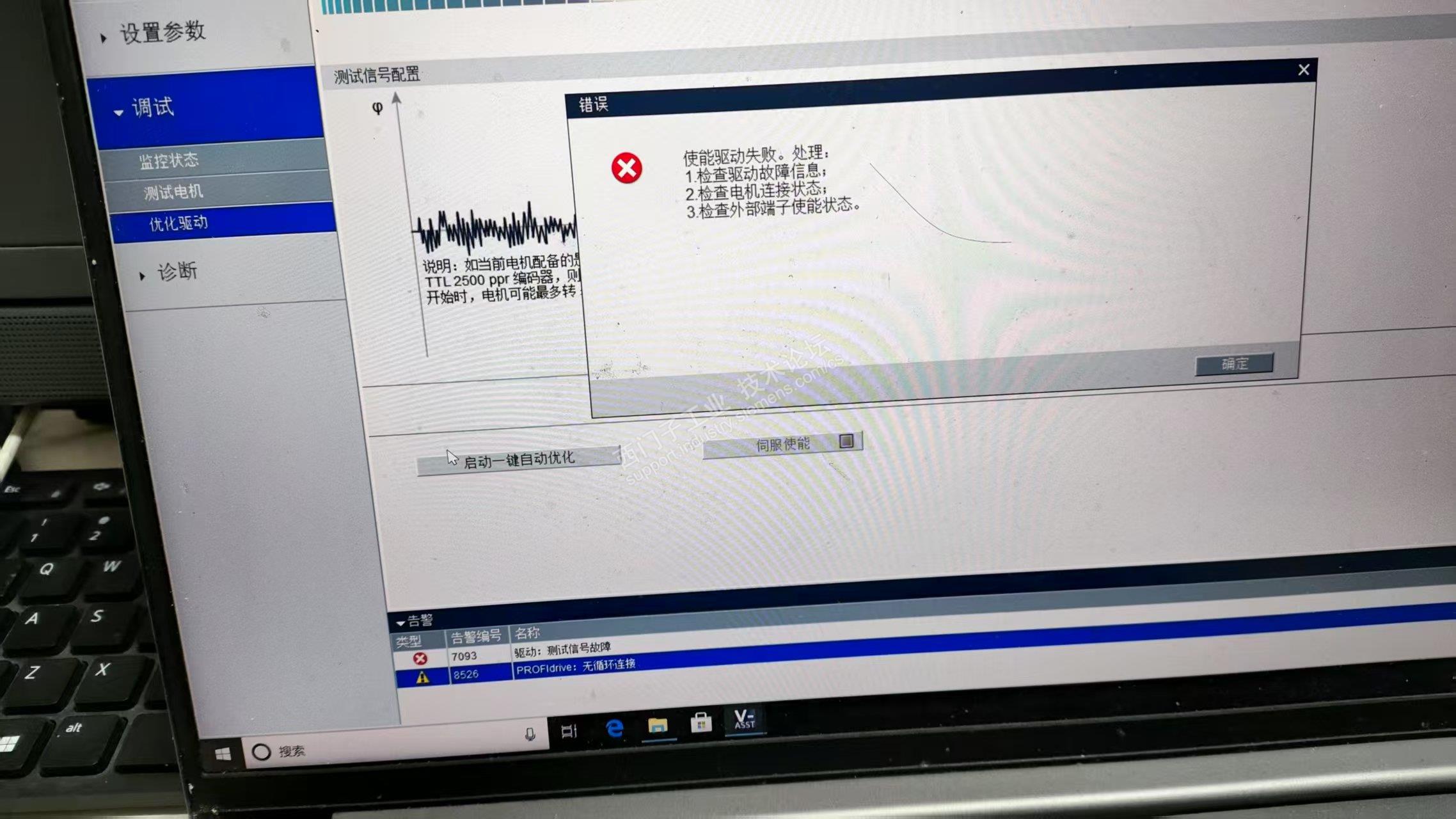 用USB连接V90PN,选择一键优化,使能,就出现7093故障;如果我USB连接,点动,就会出现1030故障。