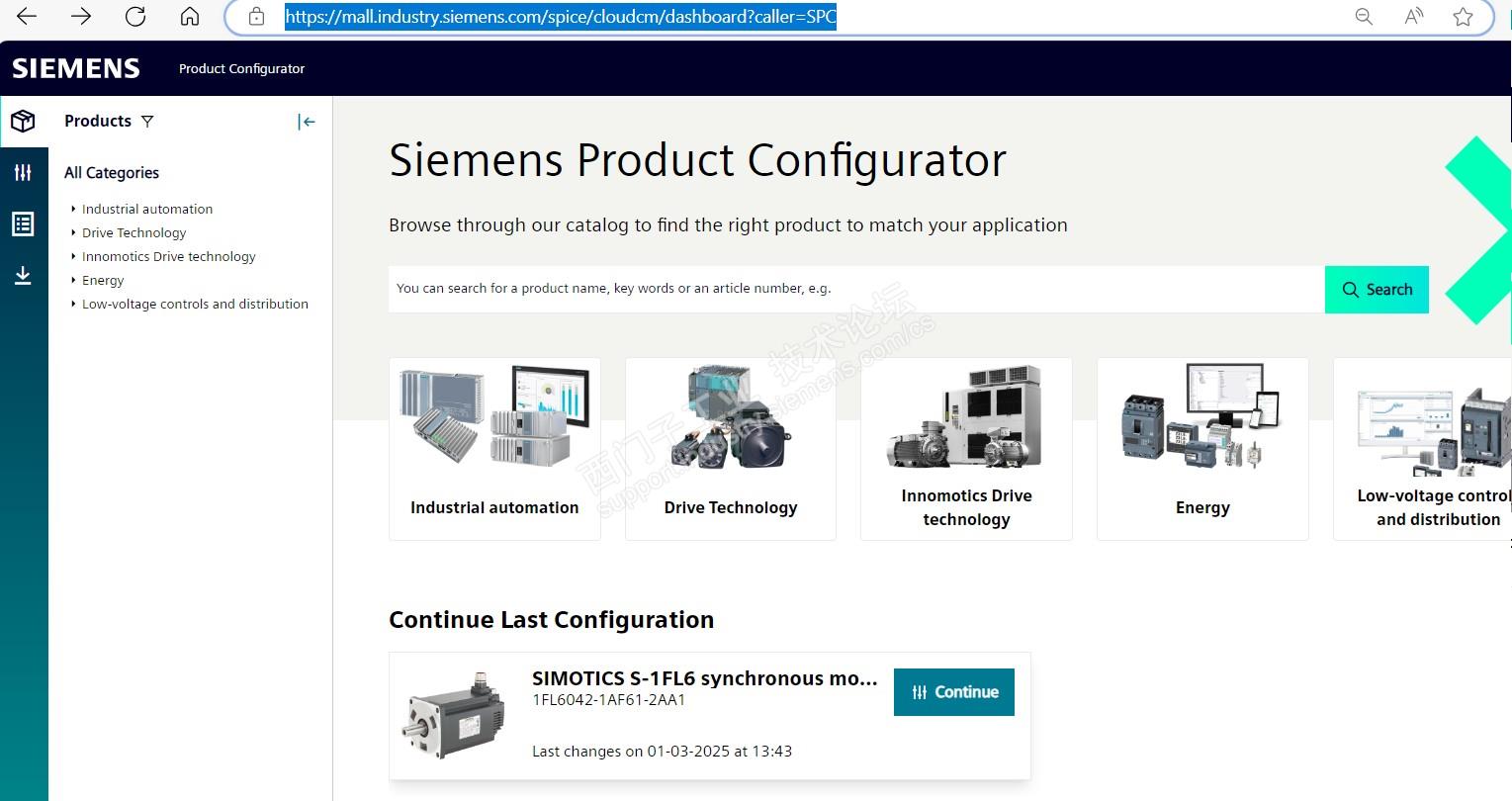 1、访问西门子 SPC(Siemens Product Configurator)官网,https://mall.industry.siemens.com/spice/cloudcm/dashboard?caller=SPC