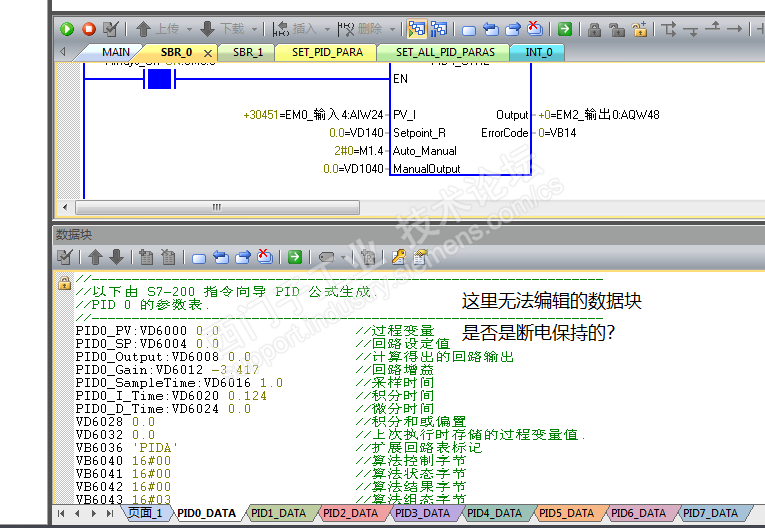 PID编程中,向导生成的PID数据区是否是断电保持的?