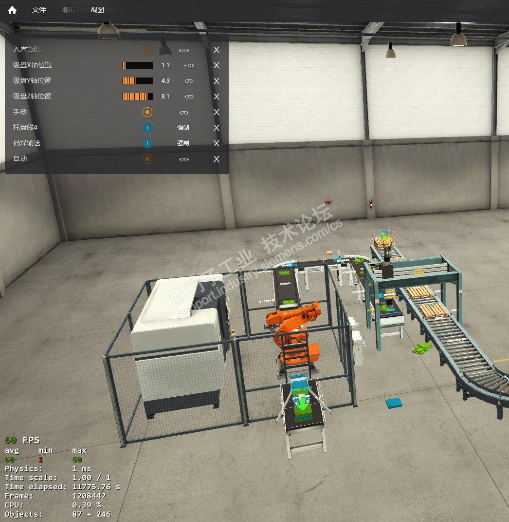 (由于图片限制,看不清全貌)最近抽空用factoryio写了个仿真,有自动分装,自动分拣,智能仓库,话说factoryio里的组件是真的少啊