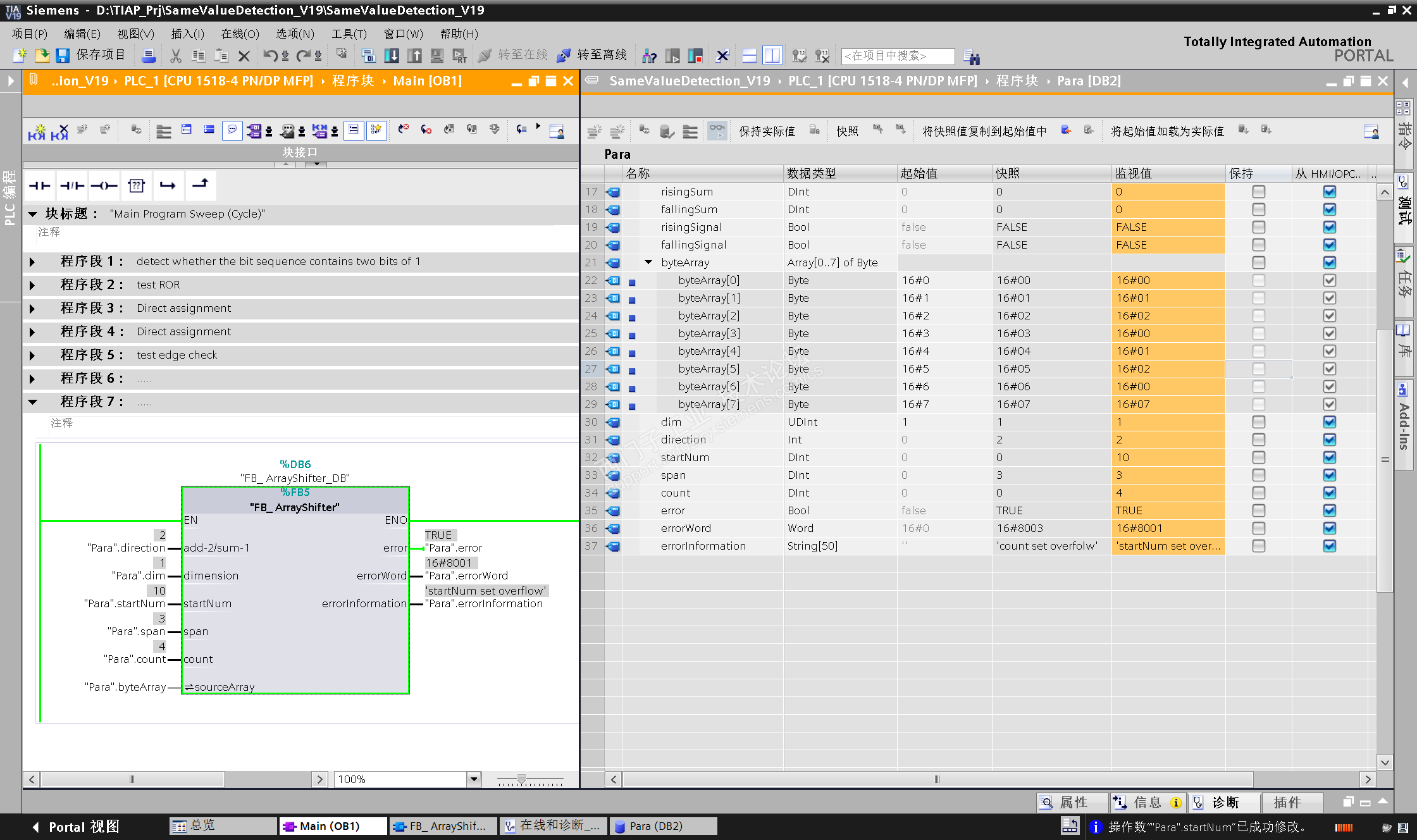 看过楼主的帖子,写了个通用块,处理数组内连续元素块的复制,其实西门子也提供了MOV_BLK,MOV_BLK_VARIANT等指令,可以快速使用。