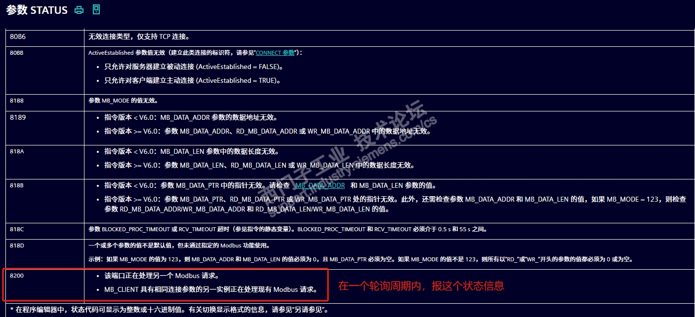 运行起来后,发现在一个轮询时间段(1秒)内读取的模拟量更新不及时,发现米快STATUS经常报错8200,所以导致未能正确读写参数,这是什么原因了?改变轮询周期和间隔周期,结果都一样。