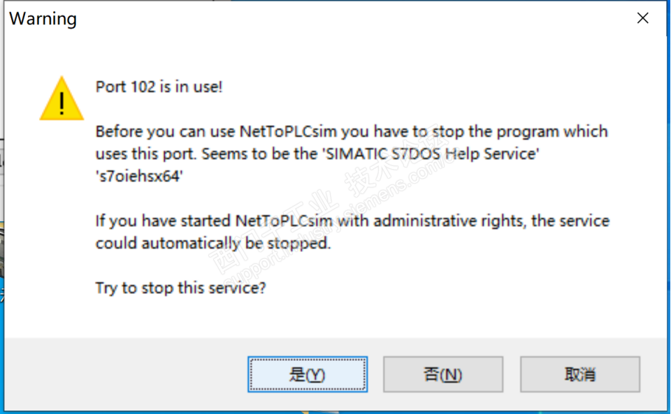 ②NetToPLCSIM打开后Warning点击“是”,注意用管理员身份打开